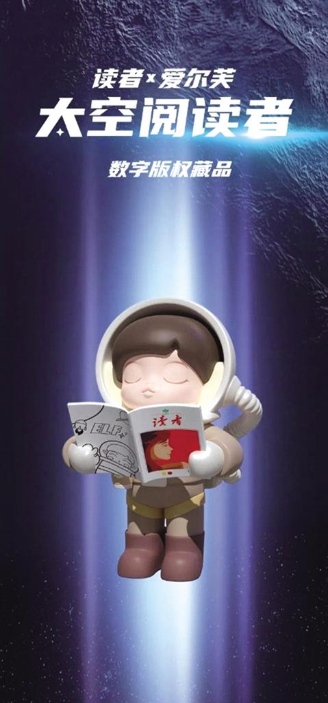 據(jù)介紹,“讀者×愛爾芙.太空閱讀者”是莫嘰文化聯(lián)手讀者出版?zhèn)髅焦煞萦邢薰就瞥龅臄?shù)字版權(quán)藏品。愛爾芙是莫嘰旗下火爆主題IP ,是一位水澤精靈,擁有治愈、溫暖、親和、陪伴的特質(zhì)。本次藏品以3D形態(tài)呈現(xiàn)愛爾芙在太空中手捧《讀者》閱讀的樣子,借此致敬不斷探索、不斷求知的中國航天人。