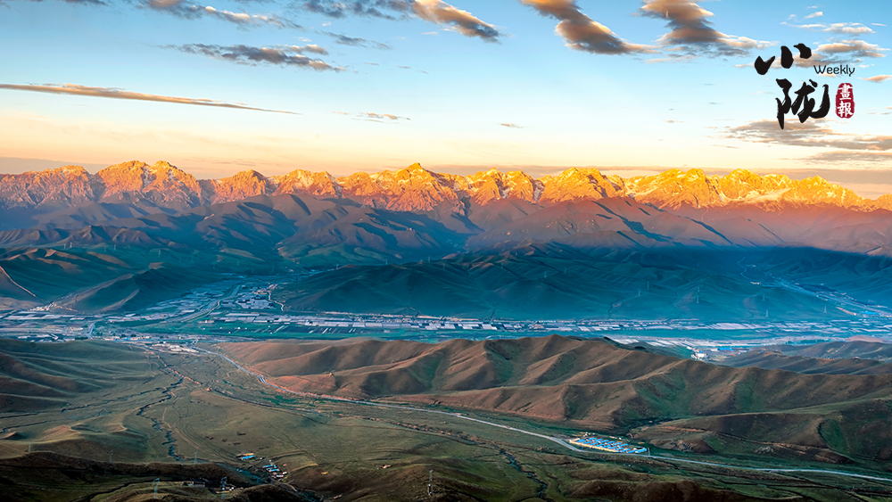 近處茵茵草場,滿是嫩盈盈的綠;遠處祁連山山脊起伏,黛綠色的基底上長滿山花。