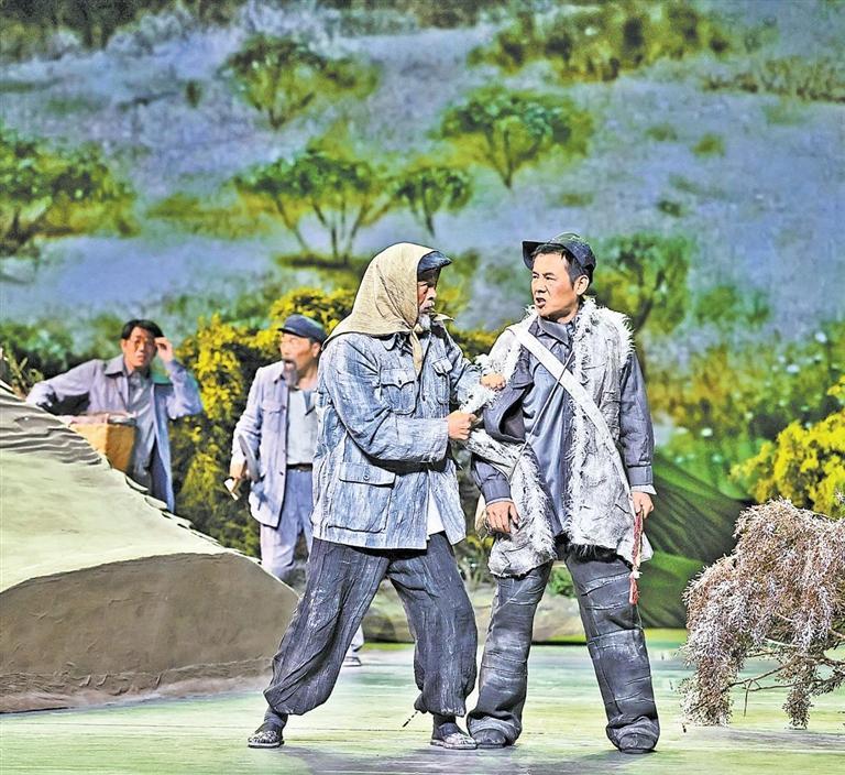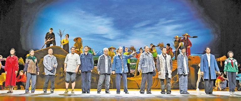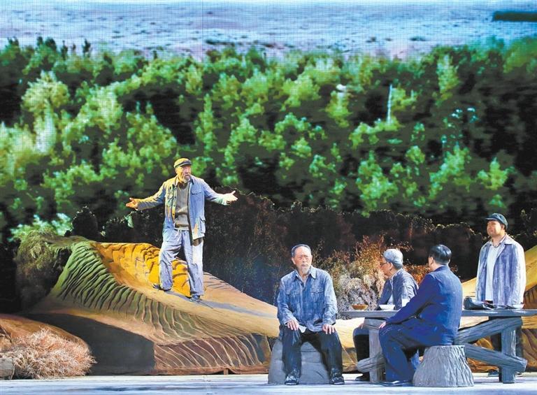 現(xiàn)實題材是話劇藝術(shù)的寵兒,在話劇進入中國一百多年的時光中,現(xiàn)實題材創(chuàng)作占據(jù)相當大的比例。在近當代中國歷史的進程中,話劇始終起著敢為天下先、針砭時弊的作用,但話劇又有其極其特殊的藝術(shù)框范。人們在觀看話劇時,仿佛就是在觀看自己的人生,觀看自己和身邊最熟悉的人們,這是話劇藝術(shù)獨具的極高的審美要求。尤其是現(xiàn)代題材的創(chuàng)作,稍有不慎便會陷入同質(zhì)化的僵硬模式,使舞臺藝術(shù)失去應(yīng)有的美感。話劇《八步沙》讓6個老漢成為舞臺聚光燈下的主角,體現(xiàn)了創(chuàng)作者們呼應(yīng)時代之需,為最普通的農(nóng)民寫生立傳的拳拳之心。6個老農(nóng)民談不上人們通常意識中的“美”,“治沙”這樣的故事也相對比較單調(diào),不大容易出彩,而創(chuàng)作者們以八步沙這個真實的地名作為劇名,以“六老漢”治沙這個真實的事件作為全劇的敘述內(nèi)容,卻能宕開一筆把特定的外部環(huán)境與人物的內(nèi)心世界巧妙地融為一體,為全劇注入了濃郁飽滿的戲劇情境和情感,使這部話劇有了獨屬于自己的一份力度、一份無法替代的光彩。全劇的情節(jié)一曲三折,以小見大,當黑壓壓的沙塵暴鋪天而來的時候,當六老漢在嚴酷的環(huán)境中吃盡苦頭,摸索出“一棵樹,一把草,壓住沙子防風掏”的寶貴經(jīng)驗,使漫無邊際的沙漠終于出現(xiàn)一抹綠色,繼而眼看著一棵又一棵綠樹成活成林,終于成為一片綠洲的時候,我相信觀眾的心也被藝術(shù)琴弦撥動,始終被劇情牽著走,為劇中人物的命運擔心、懸心、痛心、開心,從中深深地感受到劇中所蘊藏的豐富內(nèi)涵和它所傳達出的真切意趣。