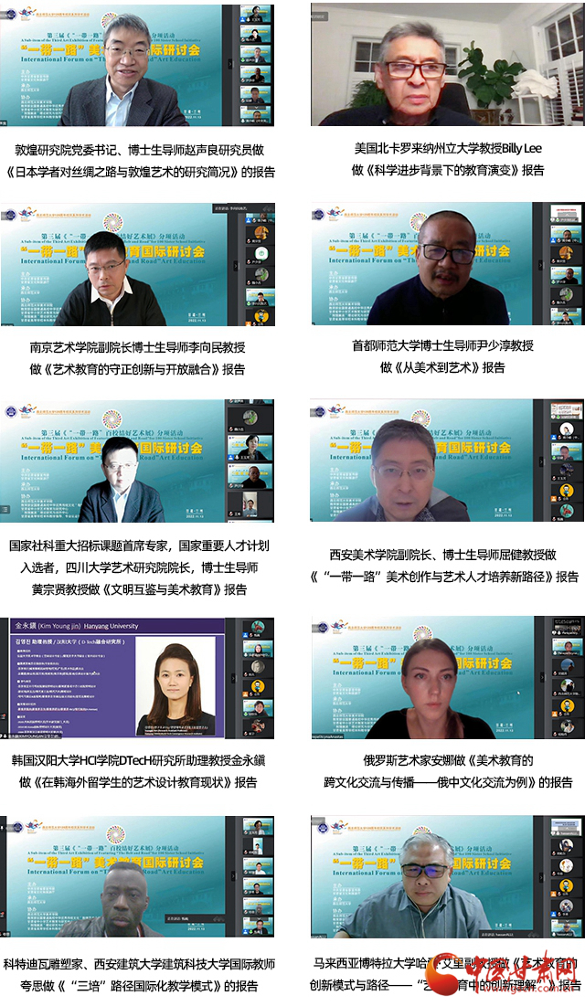 中國(guó)甘肅網(wǎng)11月16日訊 (本網(wǎng)記者 張?zhí)m琴 通訊員 王秀)推進(jìn)“一帶一路”沿線國(guó)家和地區(qū)美術(shù)交流,促進(jìn)美術(shù)教育的國(guó)際化合作和發(fā)展,搭建國(guó)際交流的學(xué)術(shù)平臺(tái),“一帶一路”美術(shù)教育國(guó)際研討會(huì)14日在西北師范大學(xué)落幕。來自美國(guó)、韓國(guó)、俄羅斯、馬來西亞等十個(gè)國(guó)家,三十八所海內(nèi)外高校、研究院、美術(shù)館、美術(shù)協(xié)會(huì)、雜志社、中小學(xué)領(lǐng)域近五十位專家在線上參加了會(huì)議,深入分析了當(dāng)前美術(shù)教育所面臨的挑戰(zhàn)與機(jī)遇,共同探討了面向未來的美術(shù)教育模式、路徑和前景。