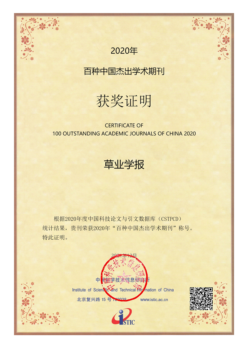 12月29日,中國(guó)科學(xué)技術(shù)信息研究所發(fā)布《2022年中國(guó)科技論文統(tǒng)計(jì)報(bào)告》,并評(píng)選出“2021年度中國(guó)百種杰出學(xué)術(shù)期刊”,其中甘肅省2種,分別是:中國(guó)草原協(xié)會(huì)、蘭州大學(xué)草地農(nóng)業(yè)科技學(xué)院主辦的《草業(yè)學(xué)報(bào)》,中科院寒旱所主辦的《高原氣象》。