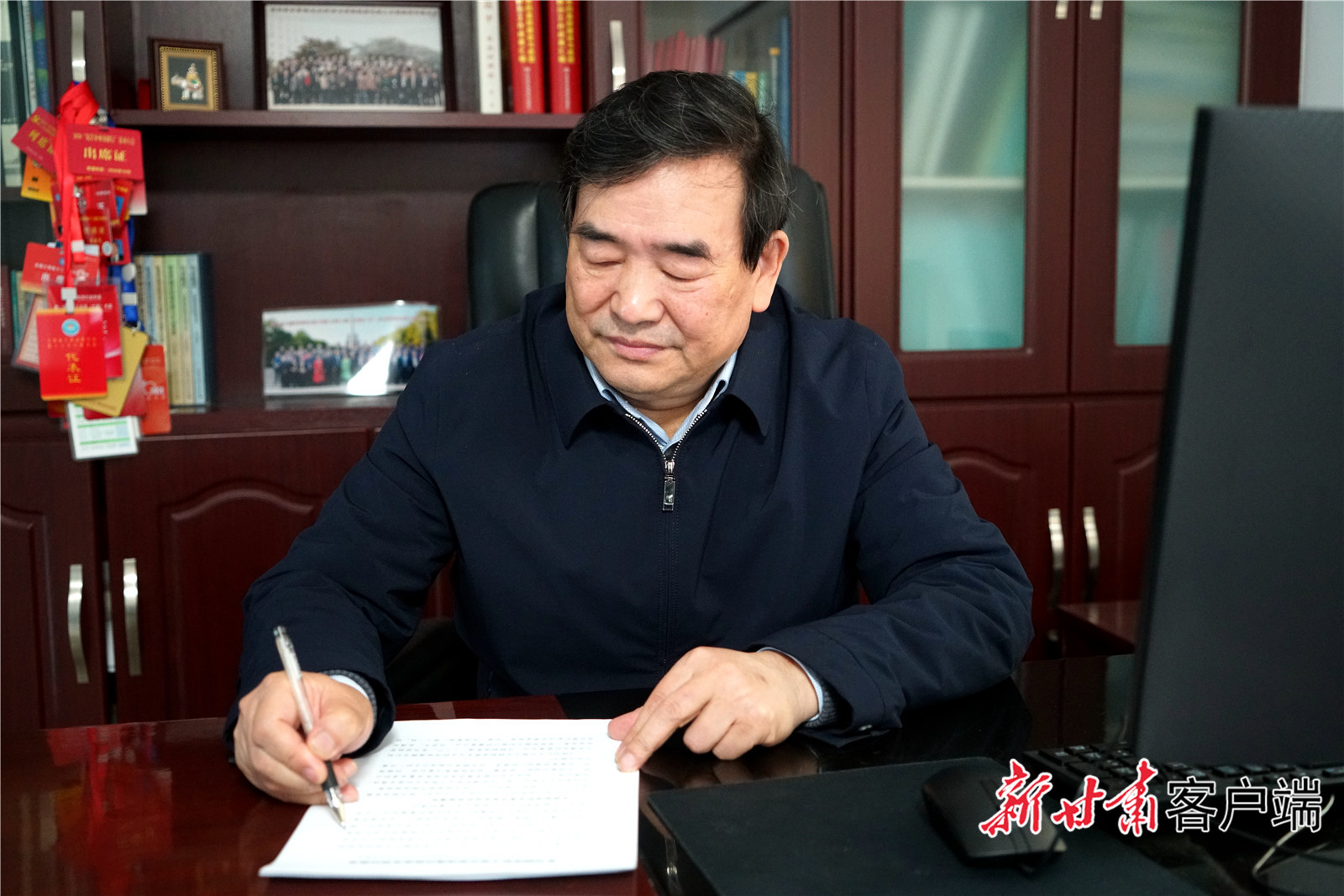 岳建武委員在準(zhǔn)備提案。新甘肅·甘肅日報(bào)記者 王占東 攝