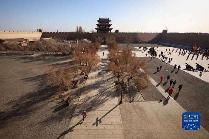3月4日,游客在嘉峪關(guān)關(guān)城景區(qū)參觀游覽。新華社記者 馬希平 攝
