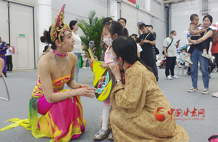此外,甘肅展區(qū)專設(shè)“我在敦煌畫壁畫”互動(dòng)展臺(tái),嘉賓市民可以在這里通過(guò)數(shù)字技術(shù),沉浸式體驗(yàn)壁畫創(chuàng)作過(guò)程,跨越千年,溯源敦煌舞在壁畫上最初的樣子。