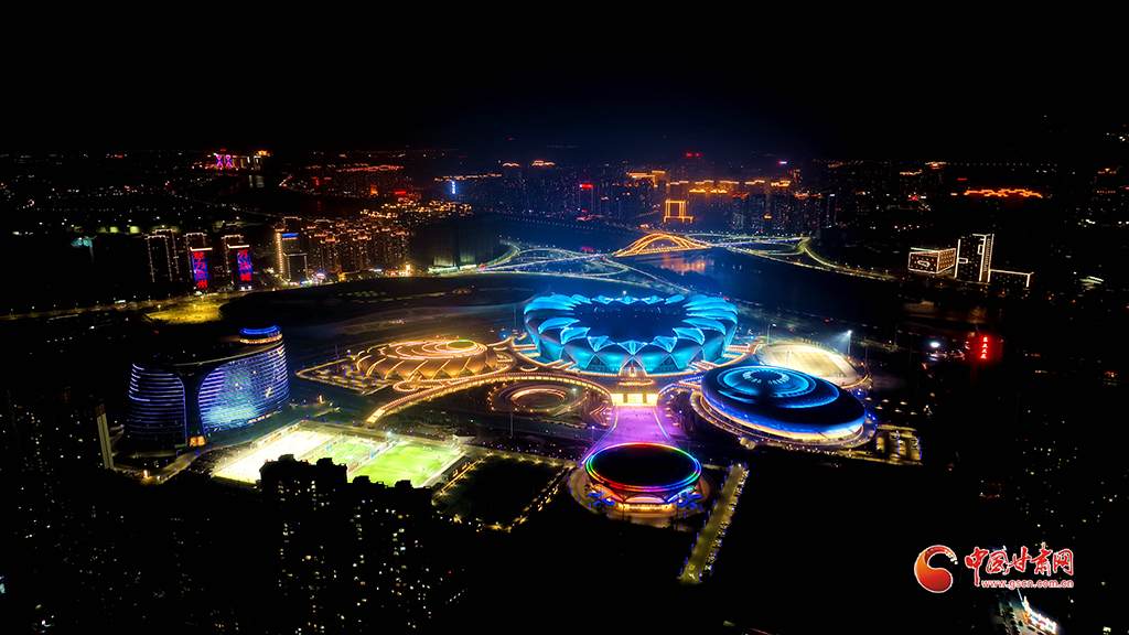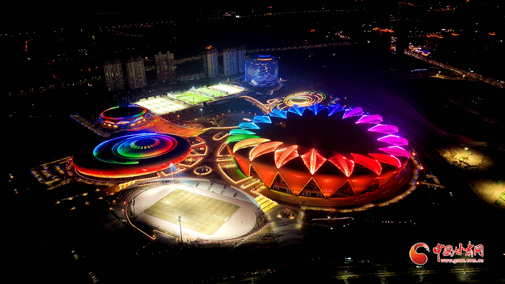 奧體中心的夜景美輪美奐,室外運動場上健身的人絡繹不絕。玫瑰體育館內兩側座椅整齊排放,場館中間的綠色地毯引人注目;郁金香綜合館除了能夠感受籃球的激情,還能體驗冰雪運動的魅力;百合游泳館內的跳臺和泳池靜靜地等待著游泳健將的光臨。奧體中心多維度展示以‘舞動于絲綢之路上的花朵’為設計理念,‘五朵金花’的設計不僅象征‘奧運之花’競技開放,也體現了奧運五環(huán)環(huán)環(huán)相扣的理念。