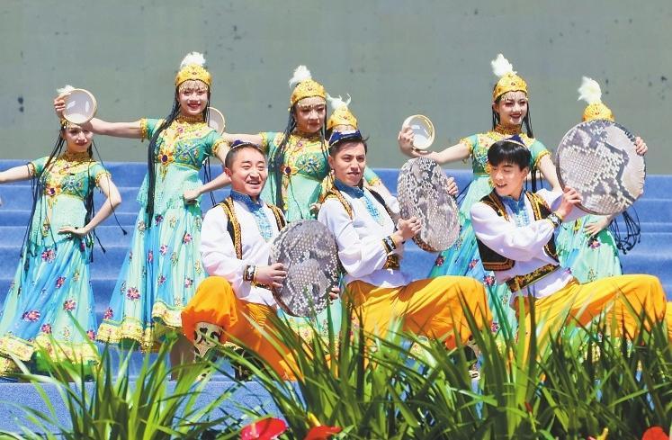 隨著曼妙激昂的舞蹈《石榴花開》上演,這場屬于“花兒”的盛會正式啟幕。隨后,《雪白的鴿子》《巴西古溜溜》、優(yōu)雅大氣的舞蹈《吉祥歡歌》《絲路民族風》《今夜草原有雨》《白牡丹令》等經(jīng)典歌舞節(jié)目精彩上演,贏得臺下陣陣掌聲。甘肅籍民謠歌手張尕慫帶來的《等風來》更是將現(xiàn)場氣氛推向高潮,來自各個民族的數(shù)千觀眾沉浸在這場非遺文化盛宴中。