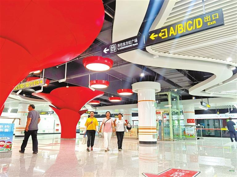“我住在附近時刻關注著工程進展,圍擋板拆除后,今天近距離接觸站口還是第一次。”在雁白大橋站A口,關注開通試運營儀式的李阿姨抱著小孫子早早就來到地鐵站,李阿姨準備當天上午地鐵開通時,乘坐首趟列車,由雁白大橋到東方紅廣場感受地鐵2號線一期全程的快速與舒適。