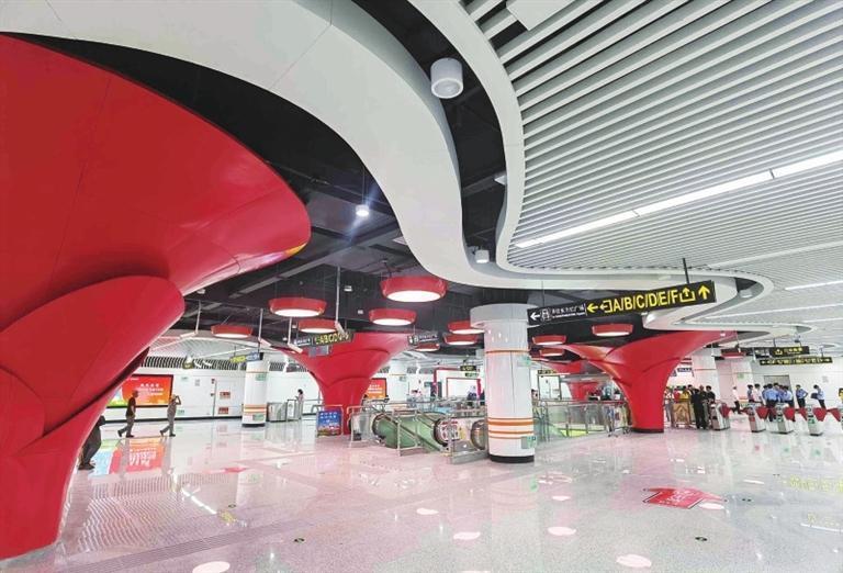 “媽媽,這個(gè)紅色的柱子像盛開(kāi)的花,燈像咱們的太平鼓呀。”蘭州軌道交通2號(hào)線剛開(kāi)通,市民梁鑫就帶著孩子來(lái)乘坐。走進(jìn)雁白大橋站,獨(dú)特的裝飾風(fēng)格讓母子倆討論起來(lái)。其實(shí),這些都是2號(hào)線的“小心機(jī)”,你發(fā)現(xiàn)了嗎?