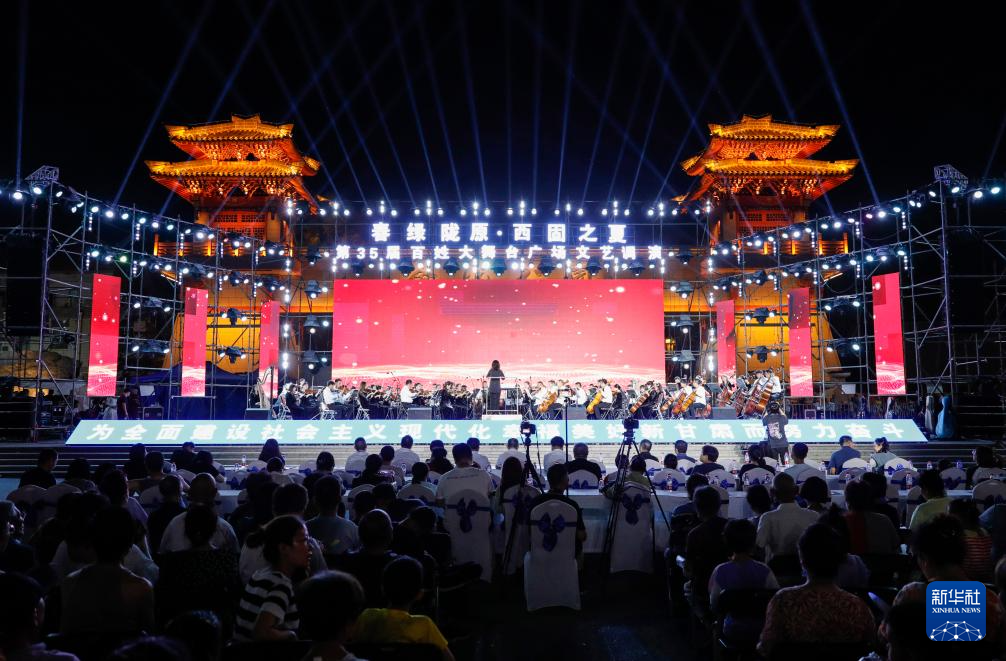 7月31日,觀眾在觀看第三十五屆“春綠隴原·西固之夏”百姓大舞臺(tái)廣場(chǎng)文藝調(diào)演。新華社記者 方欣 攝