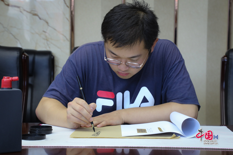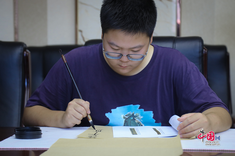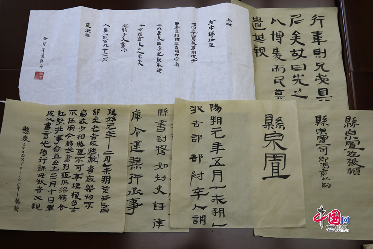 7月31日,蘭州大學(xué)古文字學(xué)強(qiáng)基計(jì)劃同學(xué)展示臨摹簡(jiǎn)牘的書法作品。中國網(wǎng)記者 鄭偉 攝