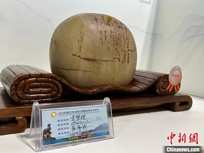 8月3日——7日,2023中國(蘭州)絲綢之路國際賞石文化節(jié)在甘肅國際會(huì)展中心舉行。圖為名為《和氏璧》的黃河石。楊娜 攝