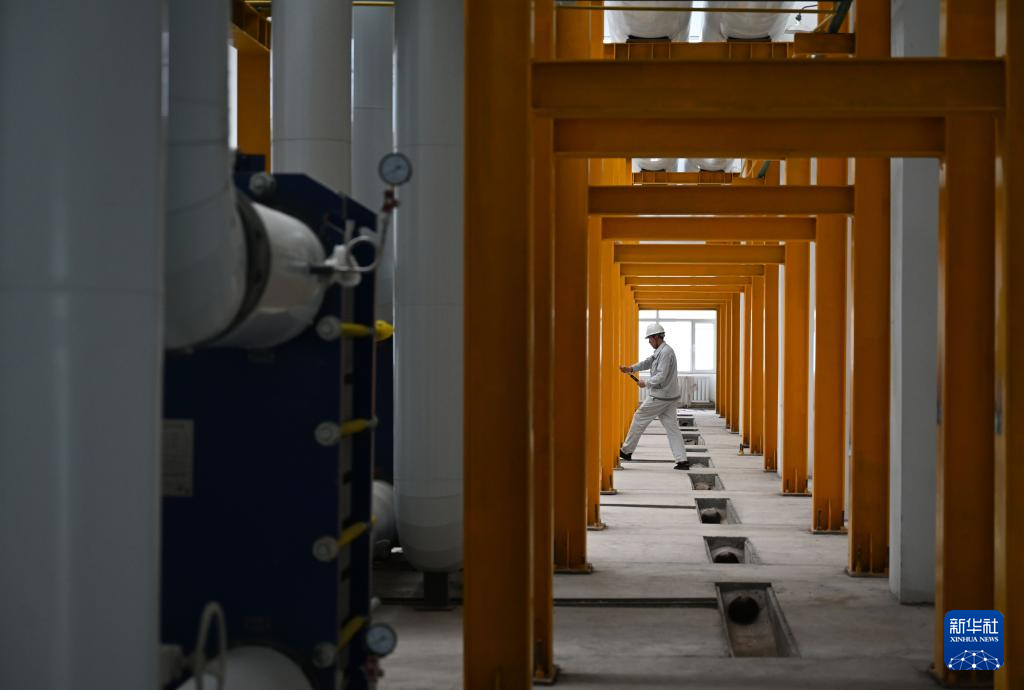 8月10日,工人在中國能建承建的張掖經(jīng)開區(qū)零碳熱源廠施工。新華社記者 金良快 攝