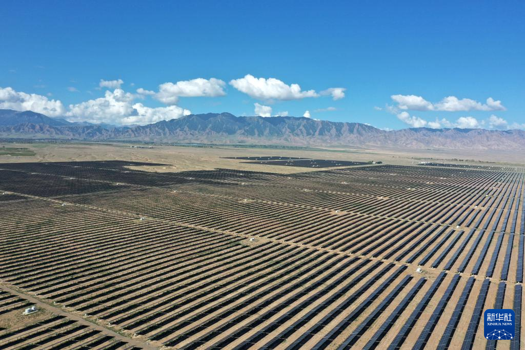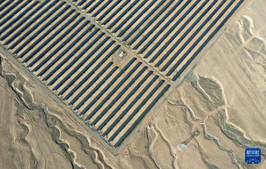 這是中國能建張掖甘州南灘30萬千瓦光伏發(fā)電項目(8月11日攝,無人機(jī)照片)。新華社記者 金良快 攝