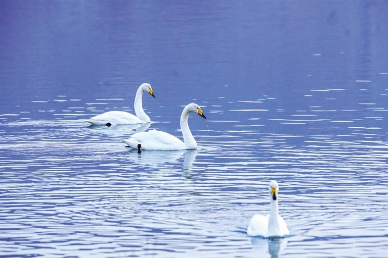 “生態(tài)好不好,鳥兒是晴雨表。”近日,西固區(qū)達(dá)川鎮(zhèn)三河口迎來了今年首批越冬大天鵝,吸引了眾多市民游客前往觀賞。記者從蘭州市林業(yè)局了解到,目前黃河蘭州段濕地分布和棲息的濕地鳥類約有68種,其中,國(guó)家I級(jí)重點(diǎn)保護(hù)鳥類3種(黑嘴鷗、黑鸛、白尾海雕),國(guó)家II級(jí)保護(hù)鳥類5種(大天鵝、鴛鴦、鹮嘴鷸、白腰杓鷸、鶚)。鵲鴨、綠頭鴨、斑嘴鴨、普通秋沙鴨和漁鷗等優(yōu)勢(shì)越冬水鳥種群數(shù)量較大,主要棲息地分布在沿線各灘涂地,棲息地質(zhì)量較高。