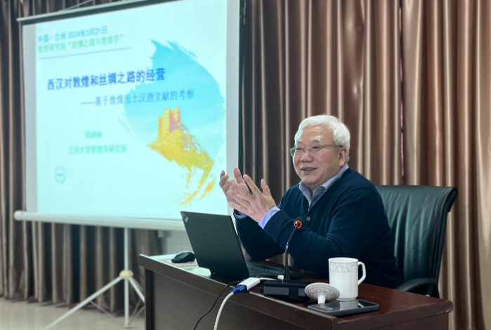 2024年3月21日下午,蘭州大學(xué)鄭炳林教授應(yīng)邀在“絲綢之路與敦煌學(xué)”系列公益學(xué)術(shù)講座主講《兩漢對(duì)敦煌和絲綢之路的經(jīng)營(yíng)》。講座由敦煌研究院敦煌文獻(xiàn)研究所主辦,趙曉星研究員主持,在蘭州分院舉行。我院專家學(xué)者,蘭州大學(xué)、西北師范大學(xué)、西北民族大學(xué)師生,及敦煌學(xué)愛(ài)好者50余人現(xiàn)場(chǎng)參加了此次學(xué)術(shù)活動(dòng)。
