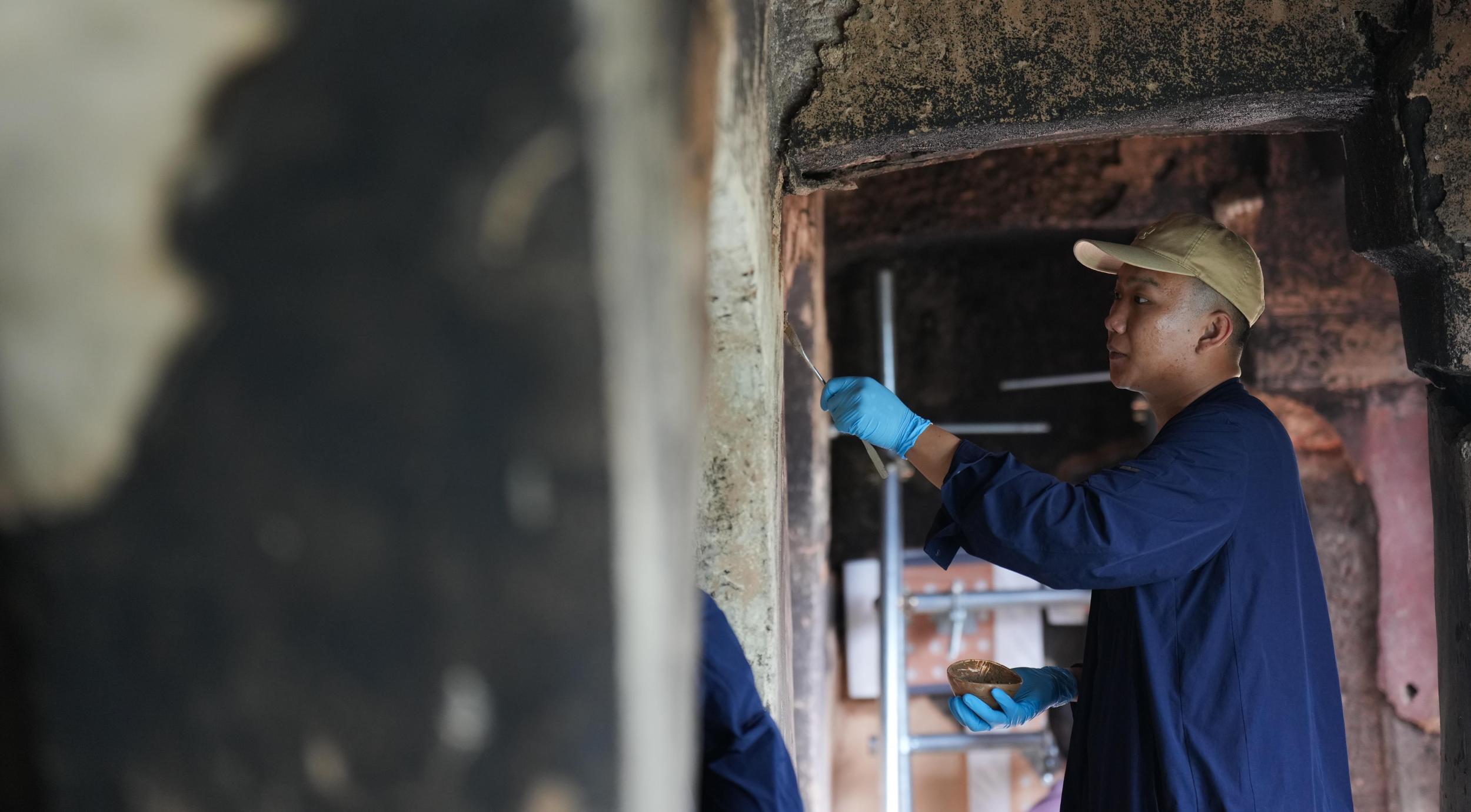 △工作人員對(duì)麥積山石窟進(jìn)行保護(hù)修繕。(總臺(tái)國(guó)廣記者李晉拍攝)