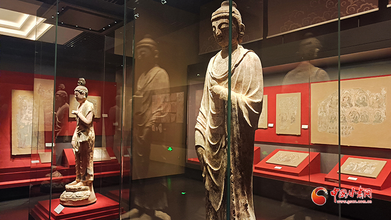 武威市博物館“天梯神韻涼州佛光”——天梯山石窟專題展被譽(yù)為“藏在博物館的石窟寺”,展品有天梯山石窟搬遷修復(fù)后的壁畫和彩塑等文物76件。