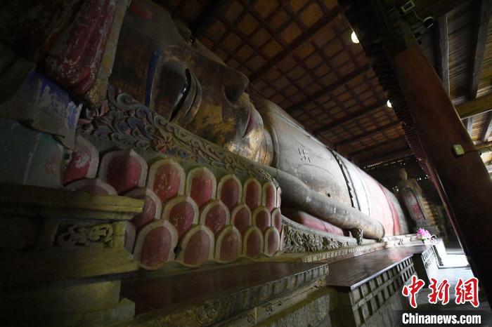 資料圖:圖為“西夏國(guó)寺”張掖大佛寺大佛殿內(nèi)的木胎泥塑臥佛。楊艷敏攝