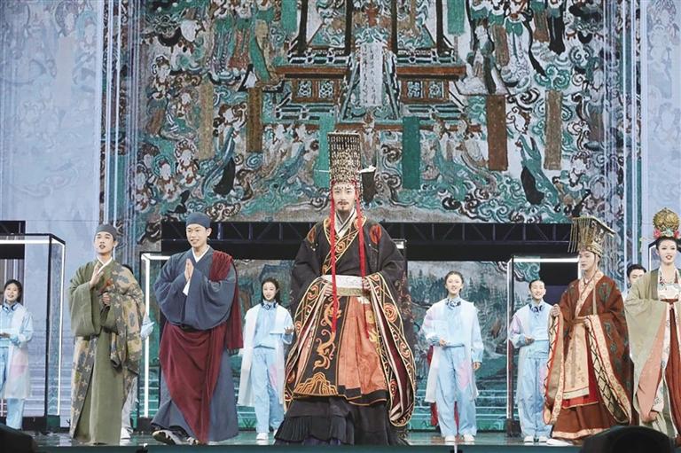 2024年,適逢敦煌研究院建院80周年,中國國家話劇院堅持把思想精深、藝術(shù)精湛、制作精良奉為圭臬,傾力打造原創(chuàng)音樂話劇《受到召喚·敦煌》,以中國戲劇與現(xiàn)代科技的深度融合,煥發(fā)敦煌文明的時代光彩。