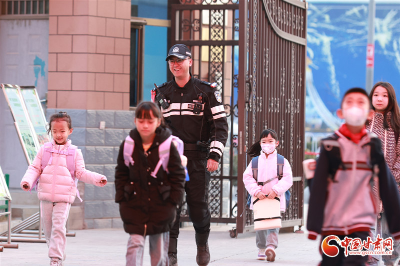 2月25日,蘭州市中小學(xué)開學(xué),學(xué)生們走進校園,開始新學(xué)期學(xué)習(xí)生活,蘭州市公安局交管支隊城關(guān)大隊輔警在城關(guān)區(qū)水車園小學(xué)民勤街分校,為學(xué)生們講解交通安全知識。