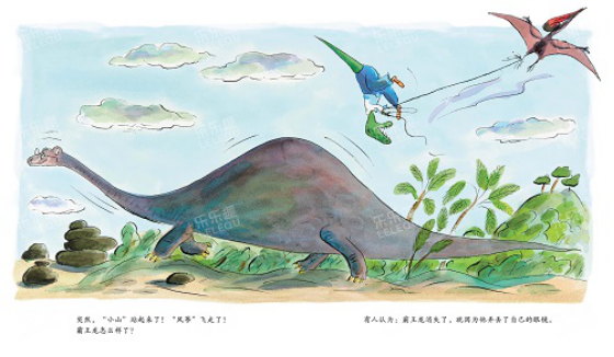 一只可憐的霸王龍弄丟了自己的眼鏡。沒(méi)有眼鏡,他分不清馬桶和洗臉盆;沒(méi)有眼鏡,他分不清咸魚(yú)和臭襪子……直到一個(gè)大風(fēng)天,霸王龍拉著一個(gè)“風(fēng)箏”吃力地爬上了一座“小山”,突然,“小山”站起來(lái)了,“風(fēng)箏”拉著他飛走了。霸王龍會(huì)遇到危險(xiǎn)嗎?他能平安地回來(lái)嗎?
