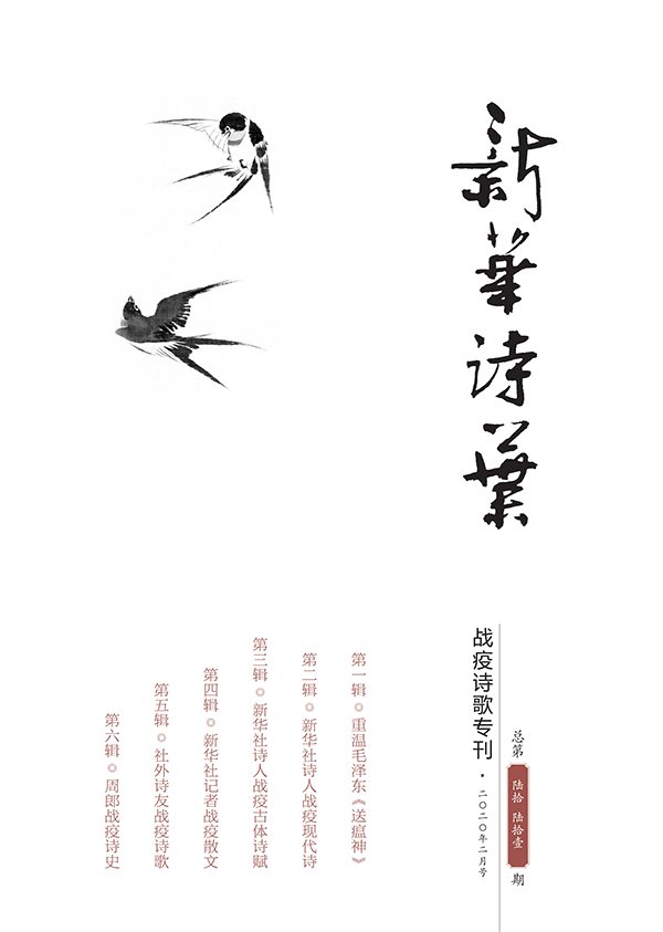 《戰(zhàn)疫詩(shī)歌專刊》是在新華社原副社長(zhǎng)何東君,原社黨組成員、秘書長(zhǎng)張錦的共同倡議策劃和組織指揮下,在較短時(shí)間內(nèi)高效率、高質(zhì)量完成的。這本??襁_(dá)140多頁(yè),共由六大單元組成。其中,第一輯開篇重溫毛澤東《送瘟神》,由何東君撰文回顧新中國(guó)戰(zhàn)勝血吸蟲病的悲壯歷史,以期為今日抗擊疫情汲取戰(zhàn)天斗地的民族精神力量;第二、第三輯分別刊登新華社記者編輯們抗疫主題的現(xiàn)代詩(shī)和古體詩(shī),風(fēng)格或豪放雄渾,或沉郁含蓄;最后一輯是周郎戰(zhàn)疫詩(shī)史專輯,專門刊登新華社高級(jí)編輯周清印的180首原創(chuàng)抗疫題材詩(shī)詞,彰顯對(duì)中華詩(shī)史傳統(tǒng)基因的繼承創(chuàng)新。