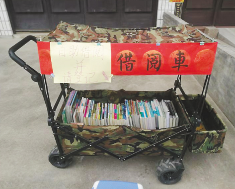 早上9點(diǎn)左右,自助借閱車從外婆家推出門,天黑了再推回來。看到想讀的書,讀者自行登記書名和個(gè)人信息,留下聯(lián)系方式,就能把書借回家。
