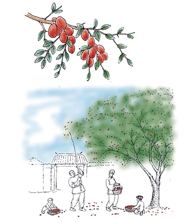 《果兒小典》是一本讀起來輕松,又別有一番滋味的書。隨著人們生活水平的提高,水果干果店鋪隨處可見,店里的果子更是天南海北,無所不有。南北半球的水果干果薈萃一堂,讓人產(chǎn)生了一種果樹永不休息、隨手可得的錯覺。什么才是果子帶給我們的正常感覺呢?那應該是一同經(jīng)歷光陰荏苒,春華秋實,經(jīng)過漫長等待之后,還要付出體力才能達成的相逢,以及由此帶來的喜悅。在憂思家國的杜甫筆下,是“庭前八月梨棗熟,一日上樹能千回”,更帶著一種少年輕狂的沖動和興奮。可以說,果子正因為寄托著我們的情感,而變得別有滋味。