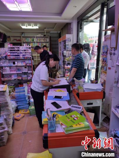 資料圖:江蘇鹽城執(zhí)法人員對某日用品商店非法銷售盜版少兒類讀物情況開展執(zhí)法檢查 全國“掃黃打非”辦公室供圖
