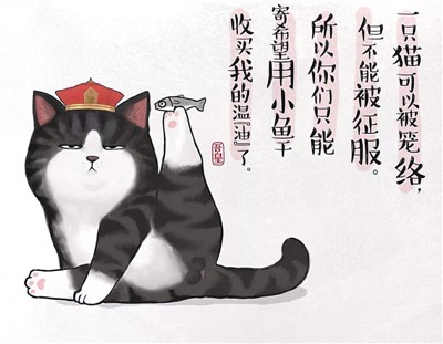 百萬級漫畫作品《就喜歡你看不慣我又干不掉我的樣子》(簡稱“喜干”)的作者白茶,甚至被稱為“社交媒體時代的豐子愷”。主人公吾皇、巴扎黑、少年、牛能是最先走進(jìn)讀者心里的“喜干元素”,在這些“貓貓狗狗”身上,國畫元素與現(xiàn)代漫畫表達(dá)完美融合,所有場景都有種基于國風(fēng)的“都市范兒”,好像一個小爪子就能撓進(jìn)你心,頗有“以古鑒今”的調(diào)調(diào)。書名本身就顯示了一種當(dāng)代人對待世界的態(tài)度,用微小而“獨一無二”的自我和世界互動。經(jīng)典語錄如“無法改變的,學(xué)會去享受”“遇事冷靜,臉小三分”“既然彼此彼此,何不放過彼此”,疫情期間,狗狗巴扎黑更是定下了“自己遛自己”的計劃,暖心的畫面令讀者愛不釋手。