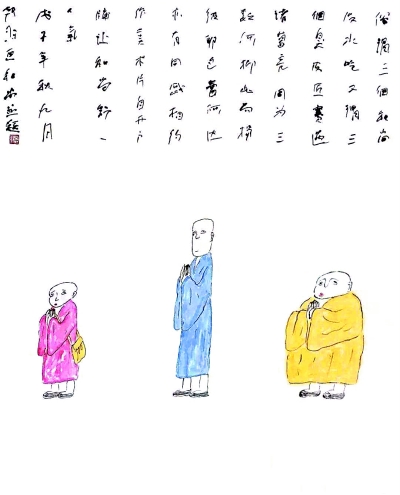 韓羽為動(dòng)畫片《三個(gè)和尚》設(shè)計(jì)的人物造型