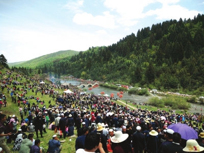 花兒是山歌的一種,亦叫“山曲”“少年”“野曲”,適合田間地頭勞作中演唱的小曲。它誕生于一千七百多年的西晉永嘉末年,其祖源《阿于歌》,由鮮卑族慕容部創(chuàng)作,傳至隴上今甘肅岷縣一帶的吐谷渾部落,被廣泛傳唱。岷州二郎山五月十七花兒會(huì)最早源于岷縣的祭神賽會(huì),據(jù)考證其形成時(shí)間為明代,參與民眾達(dá)十萬(wàn)余人,是國(guó)家級(jí)非遺項(xiàng)目。此刻的二郎山成了花兒的世界,人的海洋,從山腳至山頂歌子海潮般涌動(dòng)著,來(lái)自岷州各地的民間歌手五個(gè)一伙,十個(gè)一群,對(duì)歌賽花兒。置身于情歌的海洋,你會(huì)不由自主還原到最初的自己,放開(kāi)喉嚨高歌一曲,熱辣的歌聲仿佛冬日的暖陽(yáng),喚醒沉睡的情感,被花兒撫慰過(guò)的心靈柔軟豐盈。