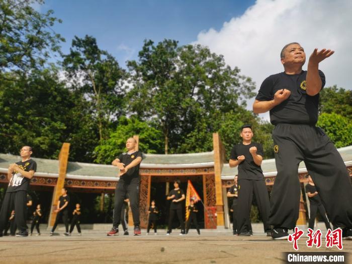 佛山市政府今年印發(fā)了《佛山市加快建設(shè)“世界功夫之城”實施方案》,各區(qū)大力推進武術(shù)發(fā)展平臺建設(shè),圖為當?shù)靥厣?ldquo;廣場武”?!?yīng)妮 攝