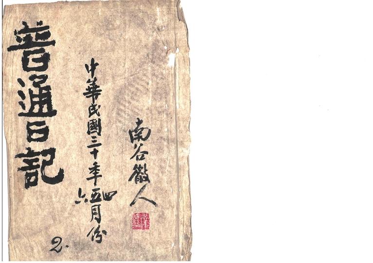金城古玩城軒潤(rùn)堂主人馬先生,近日重金收購(gòu)一冊(cè)裴建準(zhǔn)《普通日記》,行書寫本,雙頁(yè)折疊裝訂,凡66面。面長(zhǎng)31厘米,闊24厘米。每面十行字,行22、23、24字不等。封面題三行字:左上題“普通日記”四大字,下題阿拉伯?dāng)?shù)字“2”;中題“中華民國(guó)三十年四、五、六月份”;右題“南谷山人”,鈐“裴建準(zhǔn)印”白文印。何以稱《普通日記》呢?他是否還有其他《日記》待考。