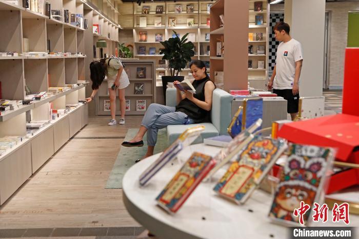 資料圖:8月19日,市民在北京西單的網(wǎng)紅書店“鐘書閣”拍照打卡。 中新社記者 蘇丹 攝