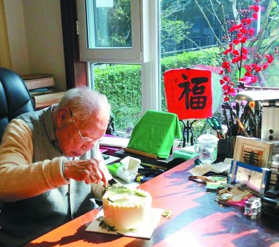 1月15日,馬識(shí)途在成都家中過106歲生日。馬萬梅攝