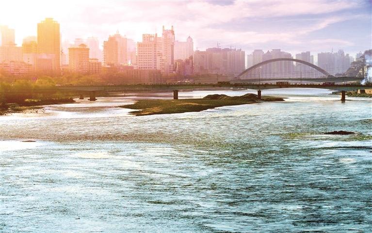 河分南北,勢(shì)接?xùn)|西。舒寧陜之博帶廣袖,帶青藏之峨冠雪衣。山逶迤而續(xù)祁連,水澎湃而瀉右?guī)?。匯洮湟之迤邐,有容乃大;與華夏之康莊,唇齒相依??睾游髯呃?,自古而始;俯渭涇秦川,由朝至夕。綴葫蘆狀岸渚坪灘,幾多古渡;依膏腴處坡谷盆地,即就蕃息。筑虹蜺經(jīng)百年,鐵橋第一;盤游龍於今朝,立交數(shù)十。去病鞭地,五泉山勝于秀逸;永誠建院,白塔寺高于云齊。指點(diǎn)九州,大禹登九州之臺(tái);漂流黃河,洋人恐招手之磯。草覆馬銜而能牧,林茂興隆云可棲。繞營盤高嶺排五,峙雄關(guān)沿河有七。留千古名,白馬浪細(xì)聽湍流不息;鎖萬代鑰,金城關(guān)只留站牌不奇。雷壇留碑,金天觀曾殿宇壯麗;華林無寺,節(jié)能燈照幽路石基。湍流黃河,九曲回腸依然東去;水轉(zhuǎn)輪盤,十方高地亦滿紛披。