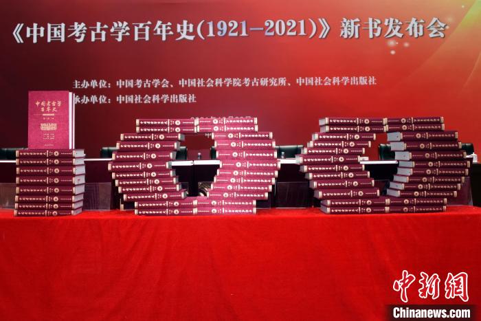 《中國考古學(xué)百年史(1921-2021)》新書發(fā)布會(huì)在北京舉行,新書在會(huì)場擺放成“100”造型?!≈行律缬浾?nbsp;孫自法 攝