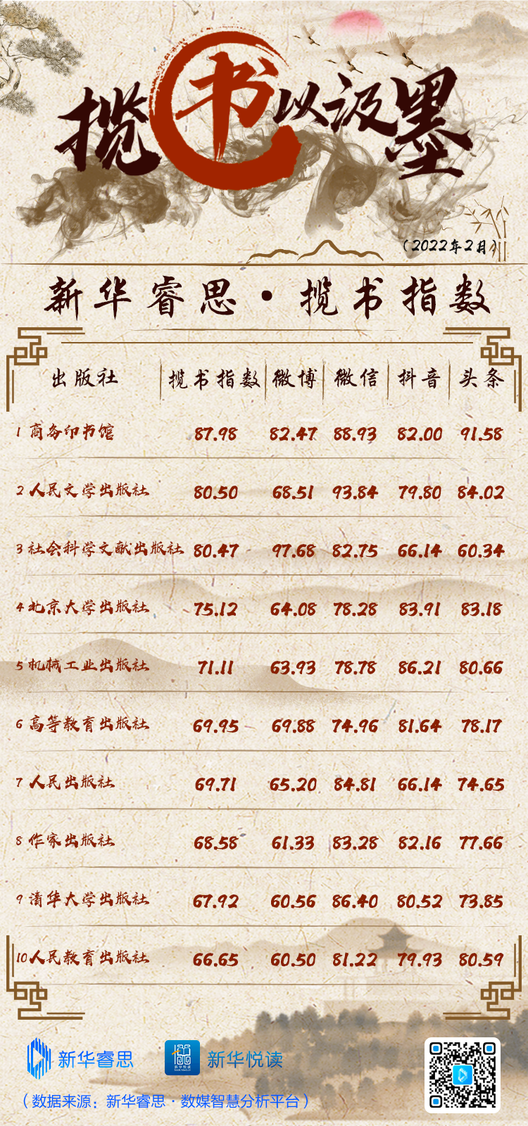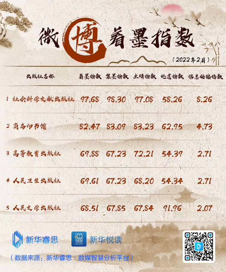 原標(biāo)題:“新華睿思·出版社新媒體傳播影響力2月榜”出爐