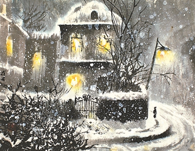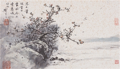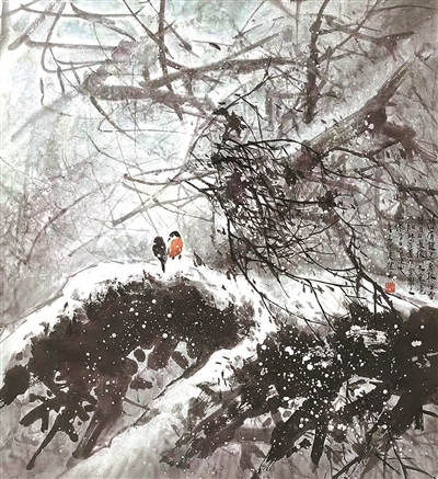 馮先生還和夫人在每年結(jié)婚紀念日時一起作畫,“我們?nèi)ツ赀^了綠寶石婚,結(jié)婚55周年。每到結(jié)婚紀念日,都是我們倆人畫一幅,畫一對小鳥。早在六七十年代最艱苦的時候就開始了,因為我夫人也是畫畫的,我們那時一起畫了一對小鳥在風(fēng)雪里,那幅畫我現(xiàn)在還有。后來我們一直畫鳥,風(fēng)景在不斷地變化,這和我們對生活的感受有很大的關(guān)系。”