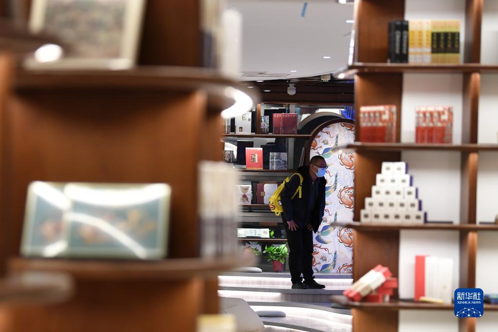 讀者在敦煌書局挑選書籍(4月21日攝)。新華社記者 杜哲宇 攝