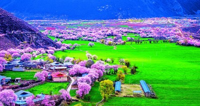 波密桃花谷桃花盛開(kāi) 西藏林芝市波密桃花谷,面積約為155.04平方千米,平均海拔2740米。每年3月到4月中旬,這里的桃花陸續(xù)開(kāi)放,人文景觀豐富的雪山下、村落間隨處都是桃花的蹤跡。作家江子在散文《去林芝看桃花》中寫(xiě)道:“我看到一路上它大片大片地盛開(kāi)。它向著我奔跑。好像是它終于認(rèn)出我來(lái),然后相邀更多的桃花來(lái)與我相認(rèn)……”央青占堆(藏族)攝/光明圖片