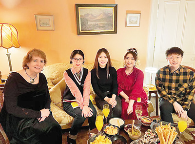 到愛爾蘭人家中做客、共度圣誕節(jié),對(duì)張靜瑄來說是新鮮的體驗(yàn)。“那天晚上,我嘗到了許多圣誕節(jié)的特色美食,比如烤火雞、布丁等,我們幾名中國學(xué)生帶去了餃子,和老爺爺、老奶奶一同分享。席間,我們聊到春節(jié)和圣誕節(jié)的慶祝方式、對(duì)東西方家庭的意義等,這讓我切身體會(huì)到了不同國家的文化差異,也拓展了我的認(rèn)知,是我難忘的珍貴回憶。”周姝蕓