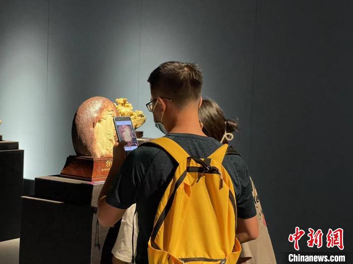 展覽現(xiàn)場的一件石雕作品引得觀眾拍照?!⊥τ?nbsp;攝