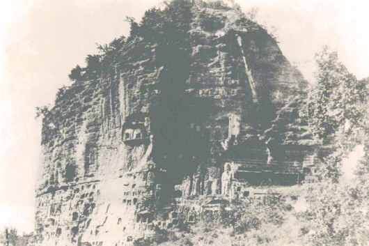望著眼前的美景,張大千拿起照相機(jī),按下快門,將美麗的瞬間留于永恒,在底片上留下了麥積山的無限魅力,給人以強(qiáng)烈的視覺沖擊力。