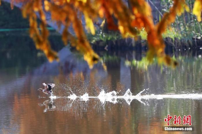 資料圖:南京燕雀湖景致。燕雀湖位于南京紫金山梅花谷南側(cè),種植大量落羽杉、池杉、水杉等色葉樹(shù)種,每到初冬時(shí)節(jié),湖畔風(fēng)景如畫。 中新社記者 泱波 攝