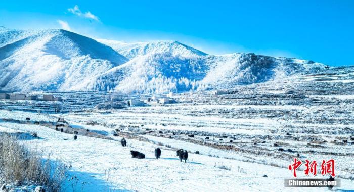 資料圖:初冬時(shí)節(jié),蘭州市榆中縣馬坡鄉(xiāng)迎來(lái)降雪,一場(chǎng)冬雪過(guò)后,村莊田野沐浴在雪景中,藍(lán)天白雪下,似童話世界。張學(xué)江 攝