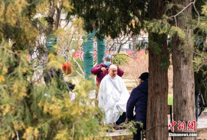 資料圖:北京市民在街頭休閑區(qū)理發(fā)。當(dāng)天是中國農(nóng)歷二月初二,民間有“二月二,剃龍頭”的傳統(tǒng)習(xí)俗,寓意辭舊迎新,帶來好兆頭。 中新社記者 侯宇 攝