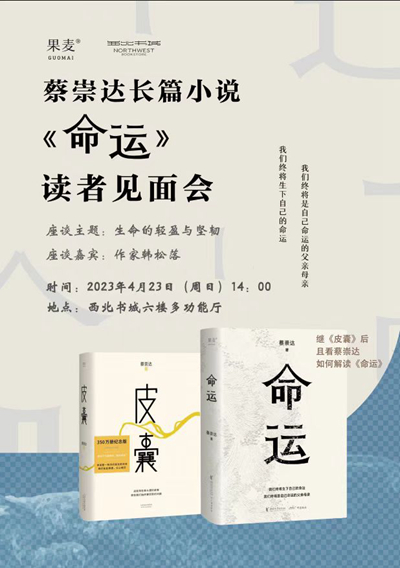 4月23日14點(diǎn),蔡崇達(dá)新書(shū)《命運(yùn)》簽售會(huì)將在蘭州西北書(shū)城舉行。