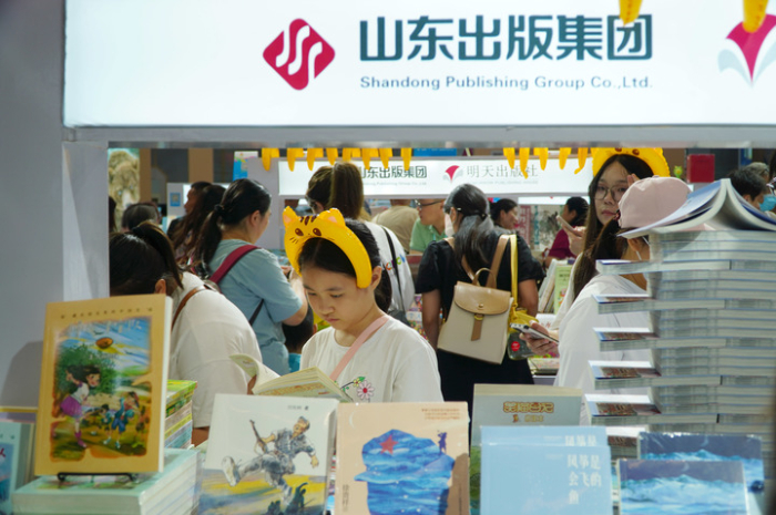 正值暑假,書博會上少兒類圖書最受青睞。二十一世紀(jì)出版社集團攜近千種圖書參展,設(shè)置“大中華尋寶記”和“世紀(jì)繪本館”主題展館,吸引眾多目光。暢銷書“大中華尋寶記”系列新書和文創(chuàng)產(chǎn)品一經(jīng)亮相便售罄,備受小讀者喜愛。